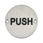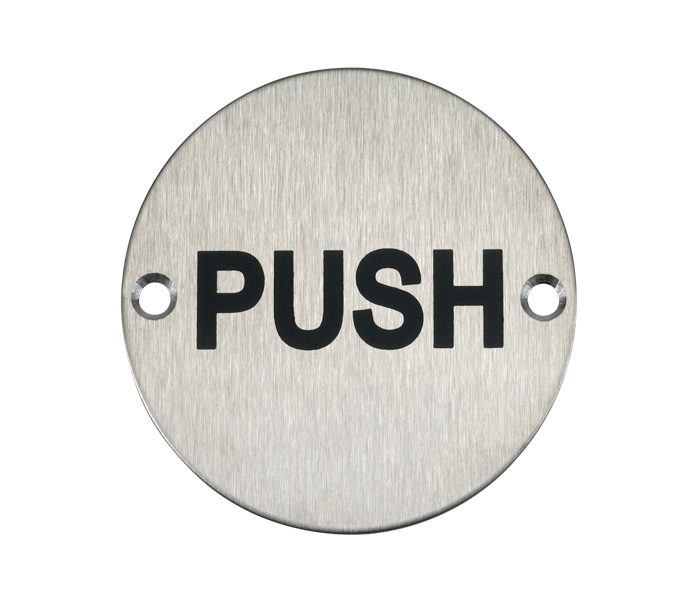 Door Sign: Push.Size: 75mm.Finish: Satin Stainless Steel.