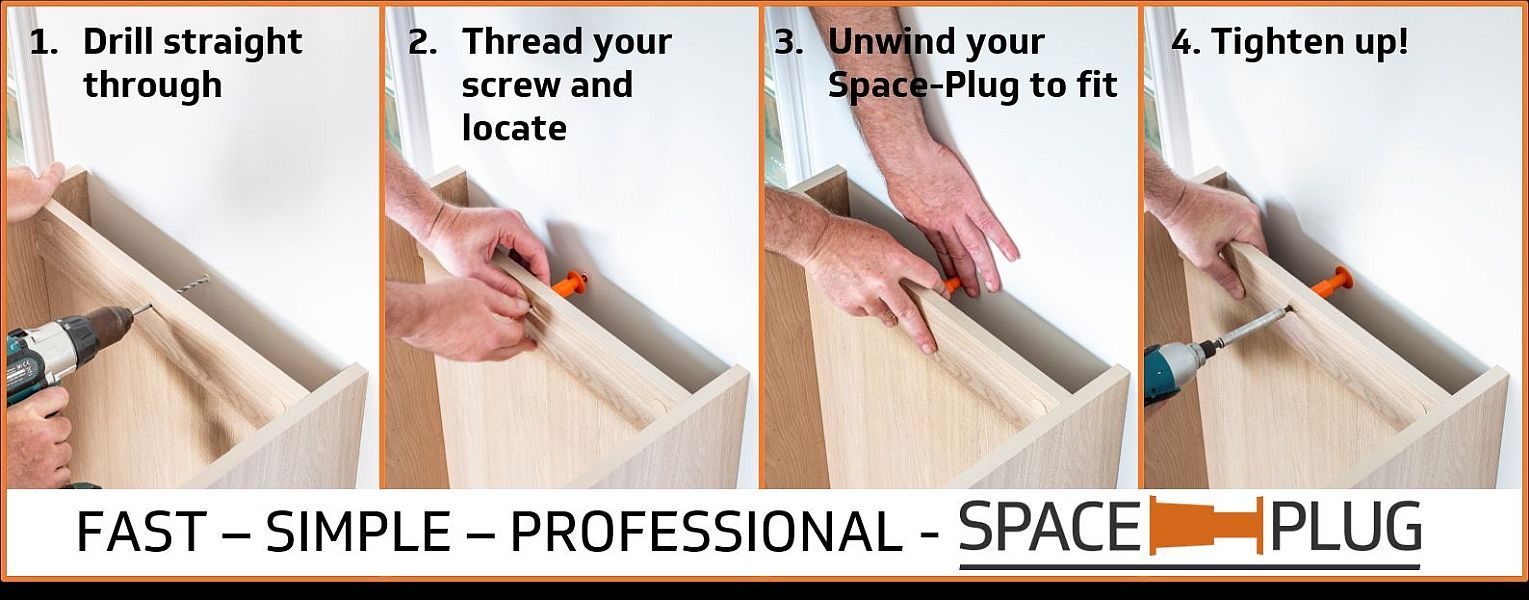 A simple method to secure units to the wall. Bridges any reasonable gap.