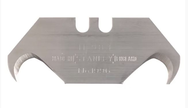 Reversible sharpened double hook with point for penetrating and cutting sheet material, in particular floor covering and plastic sheeting as used in the packaging industry.