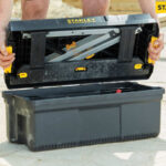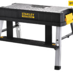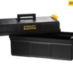 The Stanley Tools FatMax Work Step Toolbox combines a toolbox and work step in one. It has a lightweight design with an ergonomic carry handle for easy carrying. The work step has stainless aluminium legs with non-slip feet to ensure optimum stability and longevity. For added safety the step has been fitted with safety lock buttons.