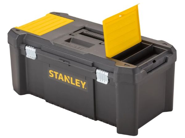 The Stanley Tools Essential Toolbox has an innovative design with an internal tool tray and small top organisers in the lid to enable small parts organisation