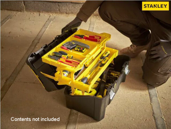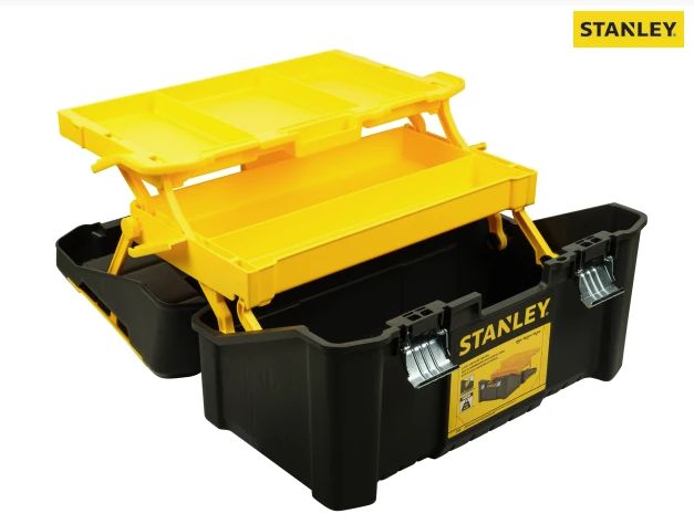 The STANLEY® Essentials Cantilever Toolbox features a 3 tier compartment system that unfolds as the box is opened, allowing for hassle-free access to contents. There are two organiser compartments built within the top of the lid that can be used to store small parts.