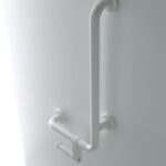 Right angle-shaped toilet roll holder.