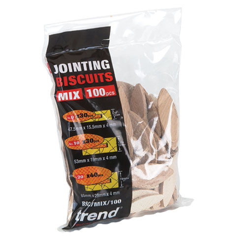 Trend biscuits are made of die cut beech. Beechwood biscuits which expand when in contact with a woodworking adhesive such as PVA glue. They are ideal for strong, fast, and accurate jointing of hard and soft woods, plywood and composition board. Compared to doweling, biscuit jointing is faster and more precise. Size=53 mm x 19 mm x 4 mm For board thickness=13 mm – 18 mm. Includes 100 x No.10 Biscuits.