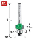 Self-guiding cutters for rounding over edges, does not require a side fence.