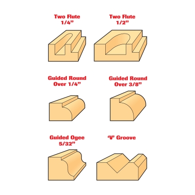 This six piece cutter set contains a range of Tungsten Carbide Tipped cutters for decorative woodworking.