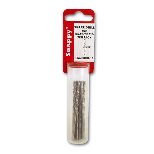 Pack of 10 spare drills to suit the drill countersinks. Supplied in a storage tube. D=9/64 inch D=3.6 mm