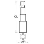 A high quality magnetic nut driver. 1/4in across flats. Ideal for bolts.Suitable for use with sheet metal screws. OL=65 mm Shank Diameter=1/4 inch hex AF=1/4 inch