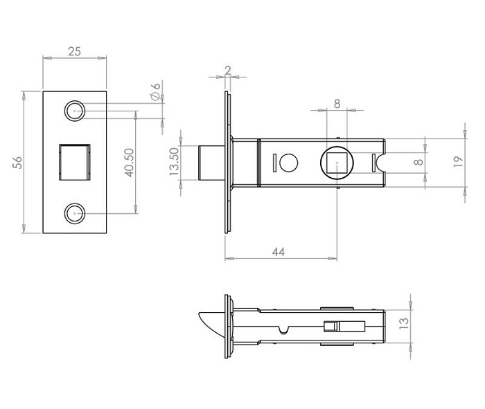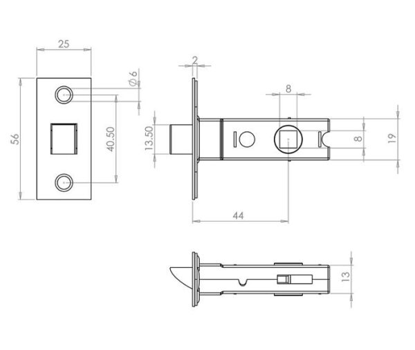 Home » HARDWARE » LOCKS & LATCHES » LATCHES » Tubular Latch 63mm Bolt Through Fix Nickel Plated (EACH)