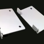Pair of off-white brackets used for hanging cabinets on twin slot shelving uprights. Compatible with Spur, Arrone, Saphire etc