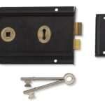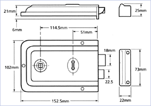 Deadbolt is locked or unlocked by key from either side. Latchbolt is withdrawn by knob from either side.