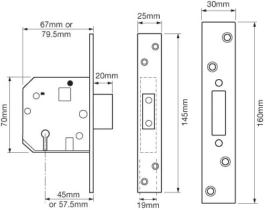 Suits wooden doors hinged on the left or right and requiring key operation only. Deadbolt locked or unlocked by key from either side. Extended 20mm deadbolt for secure positive deadlocking and additional resistance against jemmy attack. Made in the U.K.