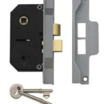 Two way action suitable for lightweight knobs or sprung handles. Deadbolt locked or unlocked by key from either side. Latchbolt withdrawn by lever handle from either side. Keys suitable for doors upto 55mm thick when using 8mm thick furniture plates.