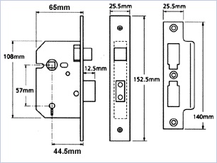 UNION J2277-SC-2.50 3L Mortice Sashlock 2.1/2 SC (EACH)