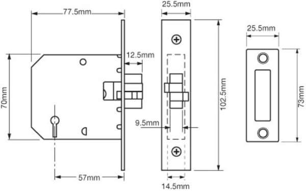 Claw deadbolt locked or unlocked by key from either side. Keys suitable for doors up to 58mm thick when using 8mm thick furniture plates.