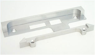 A rebated component set is used to convert a mortice lock with a flat forend, into a full rebated lock.