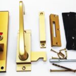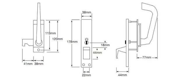 Indicator bolt (facility) left hand. Anodised gold. Complies with Doc M. Suitable for hinged or sliding doors. Surface mount. (Door hinge on left from inside). Can be re-handed by circlip removal and re-fit. Complete with mortice and surface keeps. Internal lever can be restricted to 30 or 90 degrees. External pull can be positioned at 0, 90, 180, or 270 degrees.