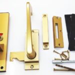 Indicator bolt (facility) right hand. Anodised gold. Complies with Doc M. Suitable for hinged or sliding doors. Surface mount. (Door hinge on right from inside). Can be re-handed by circlip removal and re-fit. Complete with mortice and surface keeps. Internal lever can be restricted to 30 or 90 degrees. External pull can be positioned at 0, 90, 180, or 270 degrees.