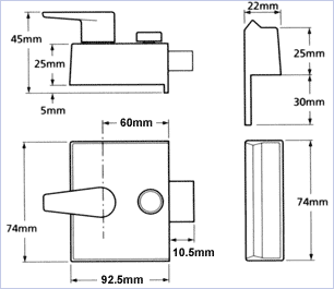 Suits wood doors 35mm to 60mm thick hinged on the left or right opening inwards. May be supplied masterkeyable. The bolt is withdrawn by key outside and handle inside. The bolt may be held in the locked or in the withdrawn position by operating the thumb button. Made in the U.K.