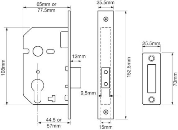 Euro Profile Mortice Deadlock. Suits wooden doors hinged on the left or right and requiring key operation only. Deadbolt locked or unlocked by cylinder key or cylinder turn. Made in the U.K. Satin Finish.