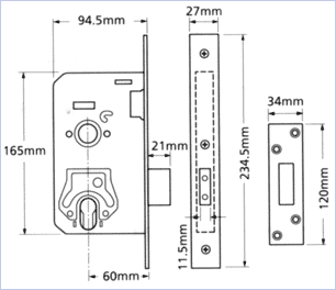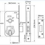 2D2 Heavy Duty architectural mortice deadlock case (60mm). Deadbolt locked or unlocked by cylinder key or cylinder turn. Separate cylinder options – oval or euro-profile key and turn, key and key or single, sold separately. Pierced to accept bolt through security roses. Satin Finish.