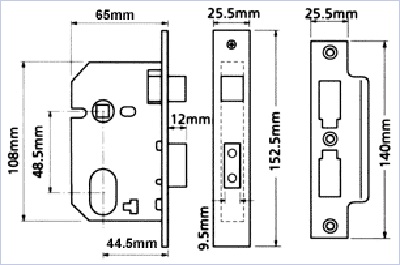 Mortice Sashlock 63mm for Oval profile cylinder.