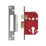 The StrongBOLT euro-profile sashlock features a chamfered bolt design which increases the performance of the lock under side load as well as making a drilling attack more difficult. On top of the chamfered bolt design the sashlock is anti-pick, anti-saw and anti-drill. It features radius inner forends for ease of first fit installation or simple retro fit replacement, it can be installed into many UK mortices without the need for additional carpentry or spoiling the edge of the door. It is suitable for timber doors up to 54mm thick and can be hinged on the left or right and is supplied with radius plastic splinter guard and anti rattle strike. For use with unsprung lever handles. Tested to BS 3621:2007, EN 1634-1 assesed for use on 60 minutes timber fire doors and secured by design accrediation.