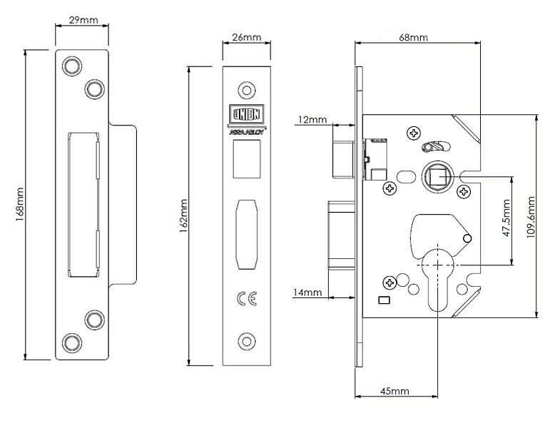 The StrongBOLT euro-profile sashlock features a chamfered bolt design which increases the performance of the lock under side load as well as making a drilling attack more difficult. On top of the chamfered bolt design the sashlock is anti-pick, anti-saw and anti-drill. It features radius inner forends for ease of first fit installation or simple retro fit replacement, it can be installed into many UK mortices without the need for additional carpentry or spoiling the edge of the door. It is suitable for timber doors up to 54mm thick and can be hinged on the left or right and is supplied with radius plastic splinter guard and anti rattle strike. For use with unsprung lever handles. Tested to BS 3621:2007, EN 1634-1 assesed for use on 60 minutes timber fire doors and secured by design accrediation.