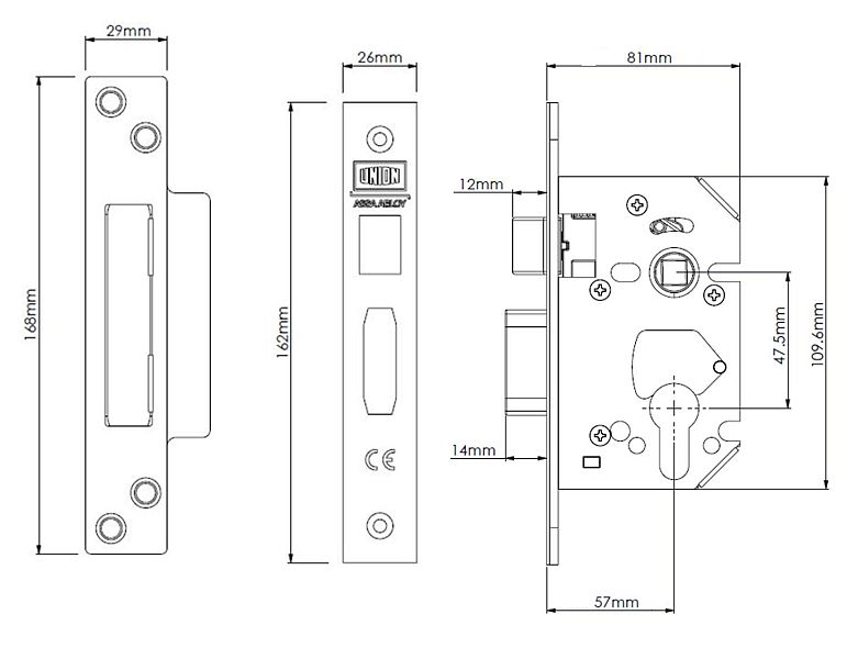UNION JL22EUS-SS-3.0 Strongbolt Euro Cylinder M/Sashlock Case 81mm SS (EACH)