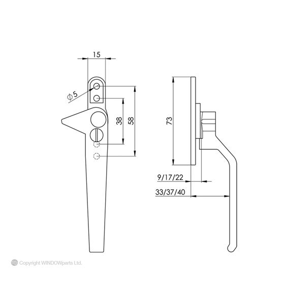 Cockspur engages to prevent the window from being opened Locked and released by key.