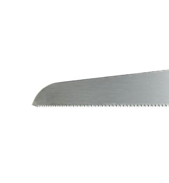 Traditionally used for the rapid trimming of plugs and dowels flush with a surface, this flush-cutting saw can be used where you want to cut off a projection without damaging the surrounding or adjoining face. This is possible because the teeth have no set. The 26 tpi Japanese tooth-pattern blade cuts aggressively (on the pull stroke), but does not mark the surface that it is cutting next to. The thin blade is flexible and can be pressed flush to any surface, yet is rigid enough for good control. Overall length is 290mm with 120mm of blade. Single edged.