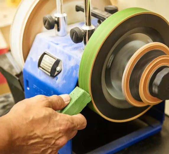Blend of chromium and aluminum oxide to give best combination of cutting speed and fine finish
