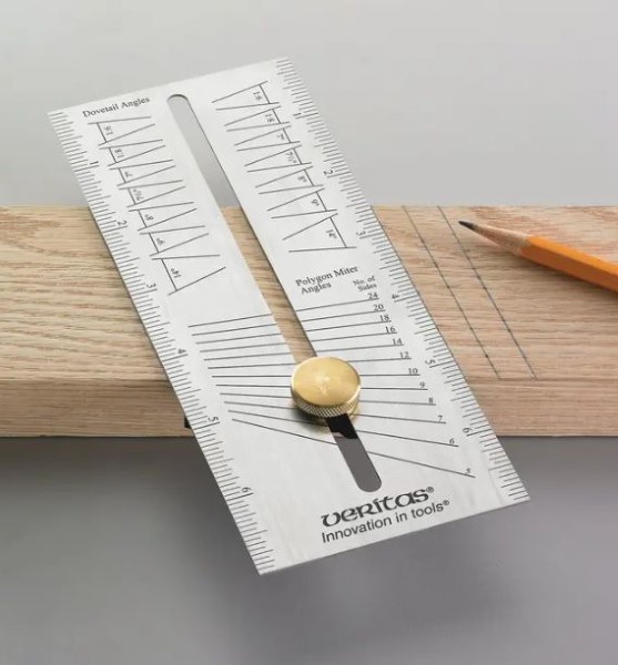 This stainless steel bevel setting tool allows a sliding bevel to be set at any angle from 1deg to 60deg in 1/2deg increments. Similarly it can be used in conjunction with a bevel to check existing angles. The blade is 75 x 180mm, and the graduations etched for permanence. The reverse has common dovetail and polygon angles