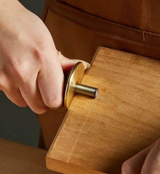 This Veritas wheel marking gauge has a hardened steel wheel cutter which scribes perfectly at any point of its circumference. Since it cuts wood fibres rather than tears, it marks cleanly, even on cross grain. The wheels singlesided bevel also pulls the gauge face against the stock, maintaining accuracy. Its cutting edge is at the extreme end of the rod, useful for transferring dimensions such as tenon shoulder and mortise depth. The wheel retracts into the face of the gauge for storage and protection. A micro-adjustable version is also available.