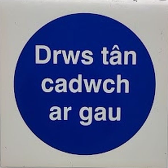 “Fire Door Keep Shut” sign in Welsh