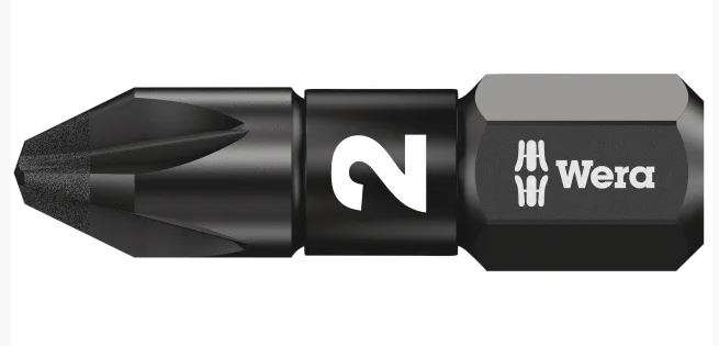 Wera Impaktor 855/1 Pozi bits 25mm long with 1/4in hexagon drive , suitable for DIN 3126-F 6.3, ISO 1173 bit holders.