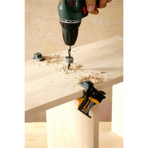 ES 22 corner clamps. Fast and simple fixing of boards and frames at an angle of 90deg, like assembling shelves, small cupboards or frames. Can be used as a mounting aid for screwing or gluing boards together plus for corner and T-joints, even with different board thicknesses (10 – 22 mm). Single-hand operation – the second hand is kept free for the workpiece.