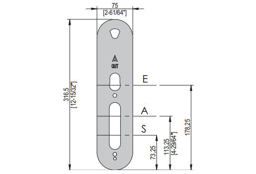 Lock-Tech cover plate. Plate to sit behind Salto to hide marks from previous door furniture etc. 75mm wide. Satin stainless steel finish.