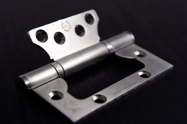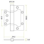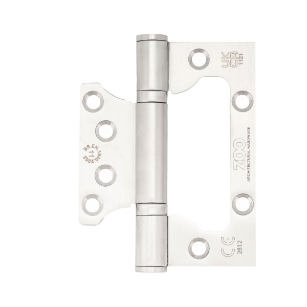 Grade 11 flush / interleaf Ball Bearing hinge. Dimensions: 100 x 79 x 3mm. Grade 201 Satin Stainless Steel. Requires no morticing into door or frame. No intumescent needed for use on fire rated doors. Successfully tested in accordance with the requirements of BS EN1935:2002, Grade 11. Successfully fire tested in accordance with the requirements of BS EN 1634-1, suitable for use on 30-minute timber fire doors. UKCA & CE Marked