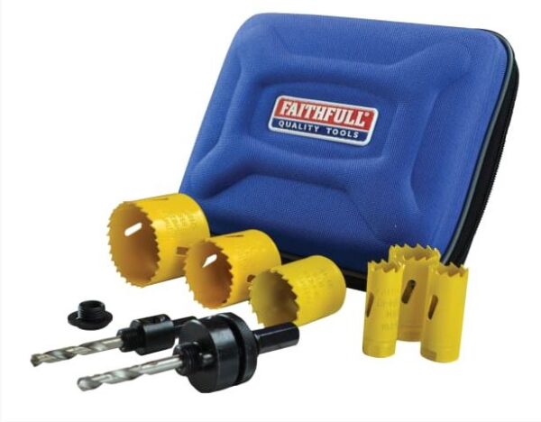 The Faithfull 9 Piece Electricians Professional Holesaw Set contains the six most frequently used electricians holesaw sizes, along with two arbors and an adaptor. These high speed steel bi-metal saws have specially hardened variable pitch teeth for fast smooth cutting. Bi-metal saws offer increased safety as they will not shatter under load.